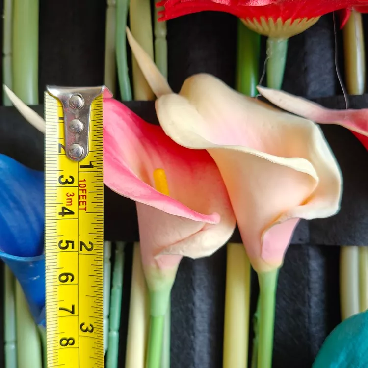 இயற்கையான மற்றும் மென்மையான காட்சி உணர்வை உருவாக்க வெள்ளை, கிரீம், இளஞ்சிவப்பு அல்லது மஞ்சள் ஆகியவற்றுடன் பொருந்தக்கூடிய 5 ~ 9 பு செயற்கை காலா லில்லி தேர்வு செய்ய பரிந்துரைக்கப்படுகிறது.