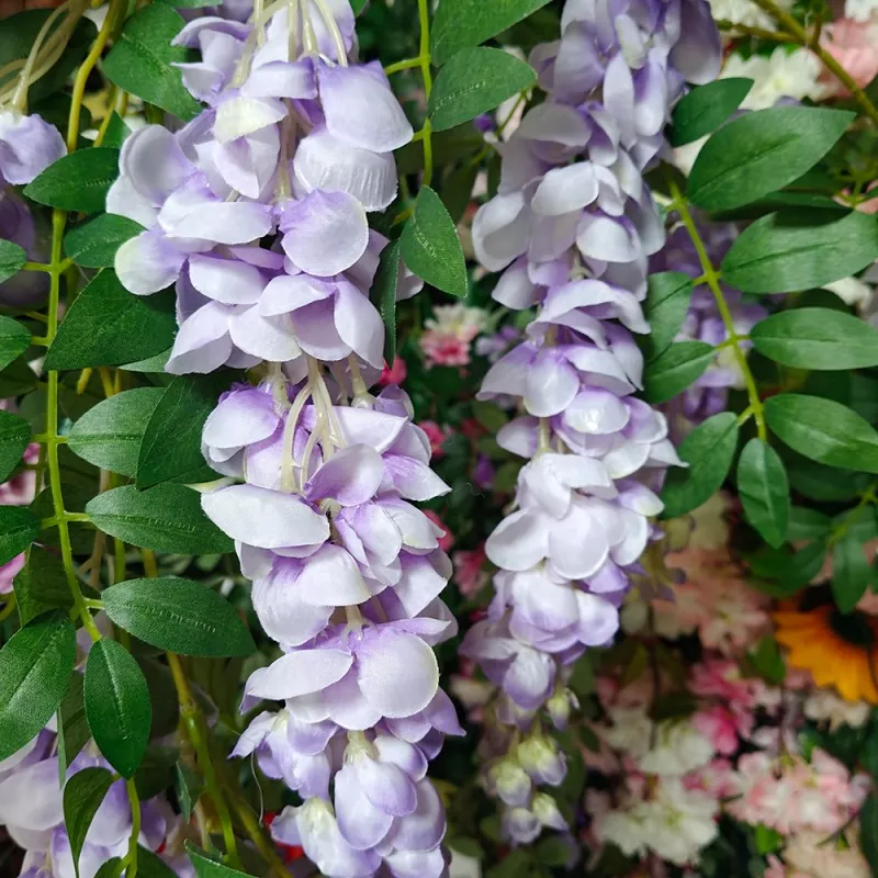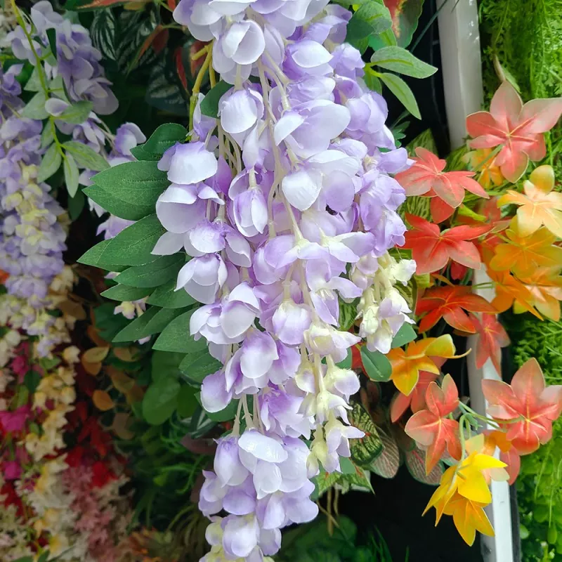 OULI® இல், வெளிப்புற பயன்பாட்டிற்கு ஏற்ற பலவிதமான போலி விஸ்டேரியா கொடிகளை நாங்கள் வழங்குகிறோம். இந்த செயற்கை கொடிகள் வெவ்வேறு நீளம், வண்ணங்கள், மலர் அடர்த்தி மற்றும் பொருட்களைக் கொண்டுள்ளன, அவை பல்வேறு காட்சிகள் மற்றும் பயன்பாட்டுத் தேவைகளில் பயன்படுத்தப்படலாம்.