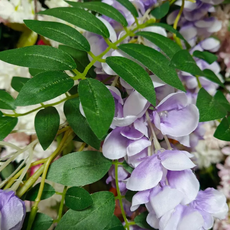 எங்கள் ஓலி செயற்கை விஸ்டேரியா கொடிகள் தனிப்பயனாக்கப்பட்ட வண்ணங்கள், நீளம், மலர் தலை அடர்த்தி, சன்ஸ்கிரீன்/தீயணைப்பு சிகிச்சையையும் ஆதரிக்கின்றன, மேலும் இலைகள் அல்லது கிளைகளுடன் இணைக்கப்படலாம். நீங்கள் ஒரு தோட்டக்கலை சில்லறை விற்பனையாளர் அல்லது திருமண அலங்கார நிறுவனமாக இருந்தாலும், நாங்கள் உங்களுக்கு மிகவும் பொருத்தமான தயாரிப்புகள் மற்றும் கொள்முதல் தீர்வுகளை வழங்க முடியும்.